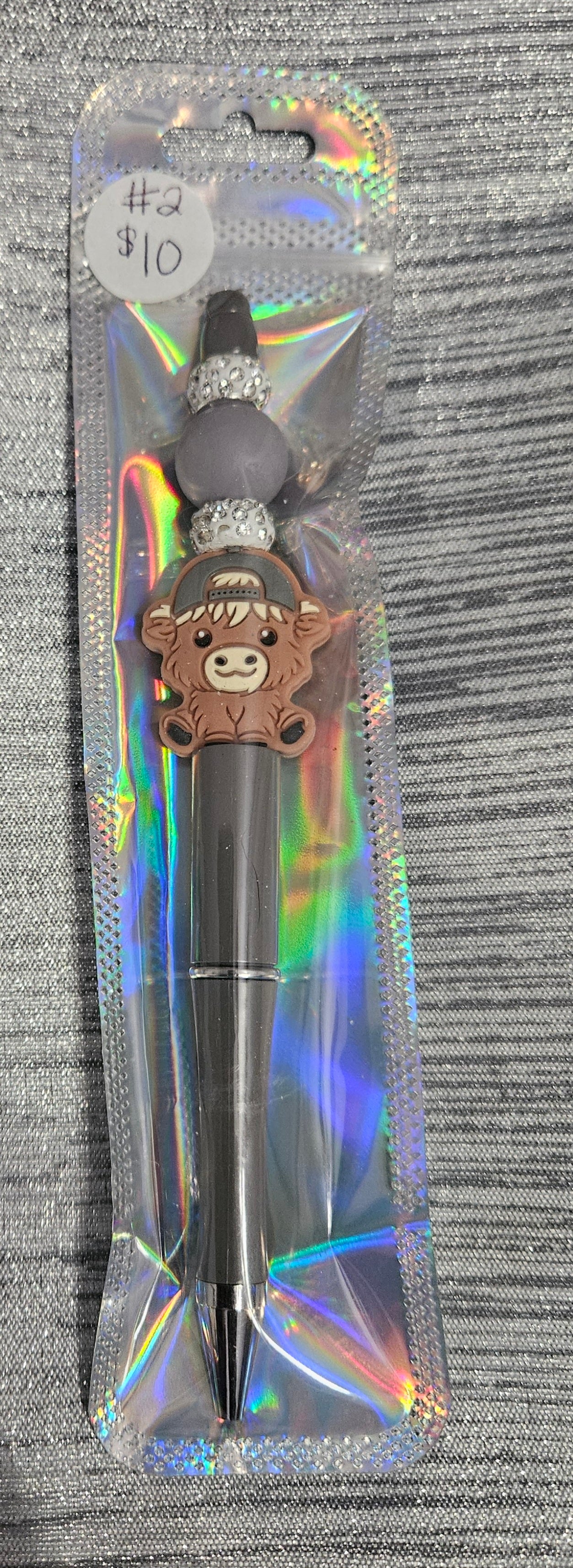 Boy Cow Pen with his hat on backwards. Grey Pen with grey beads and Rhinestones.