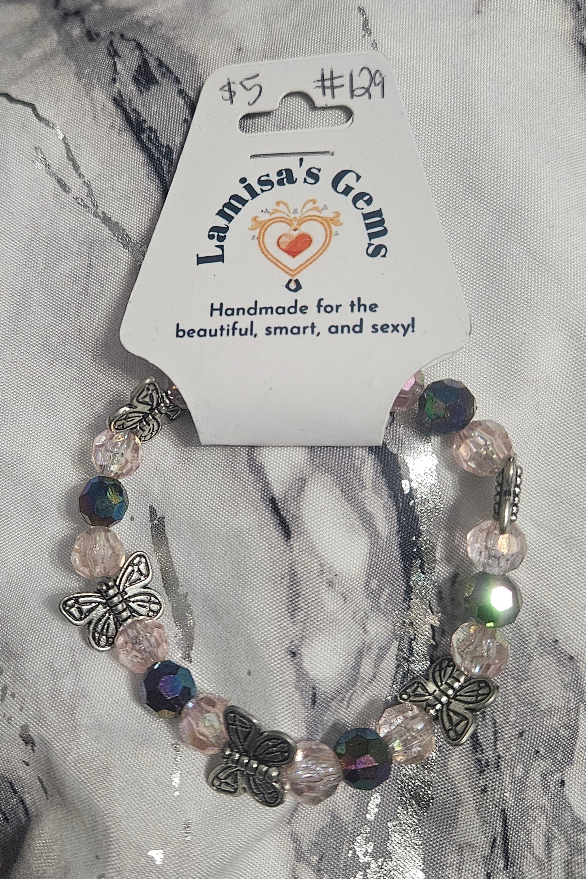 Pink & Galaxy Crystal Butterfly Bracelet with Big and small Butterflies. 6in-7in Gossamer stretch cord.