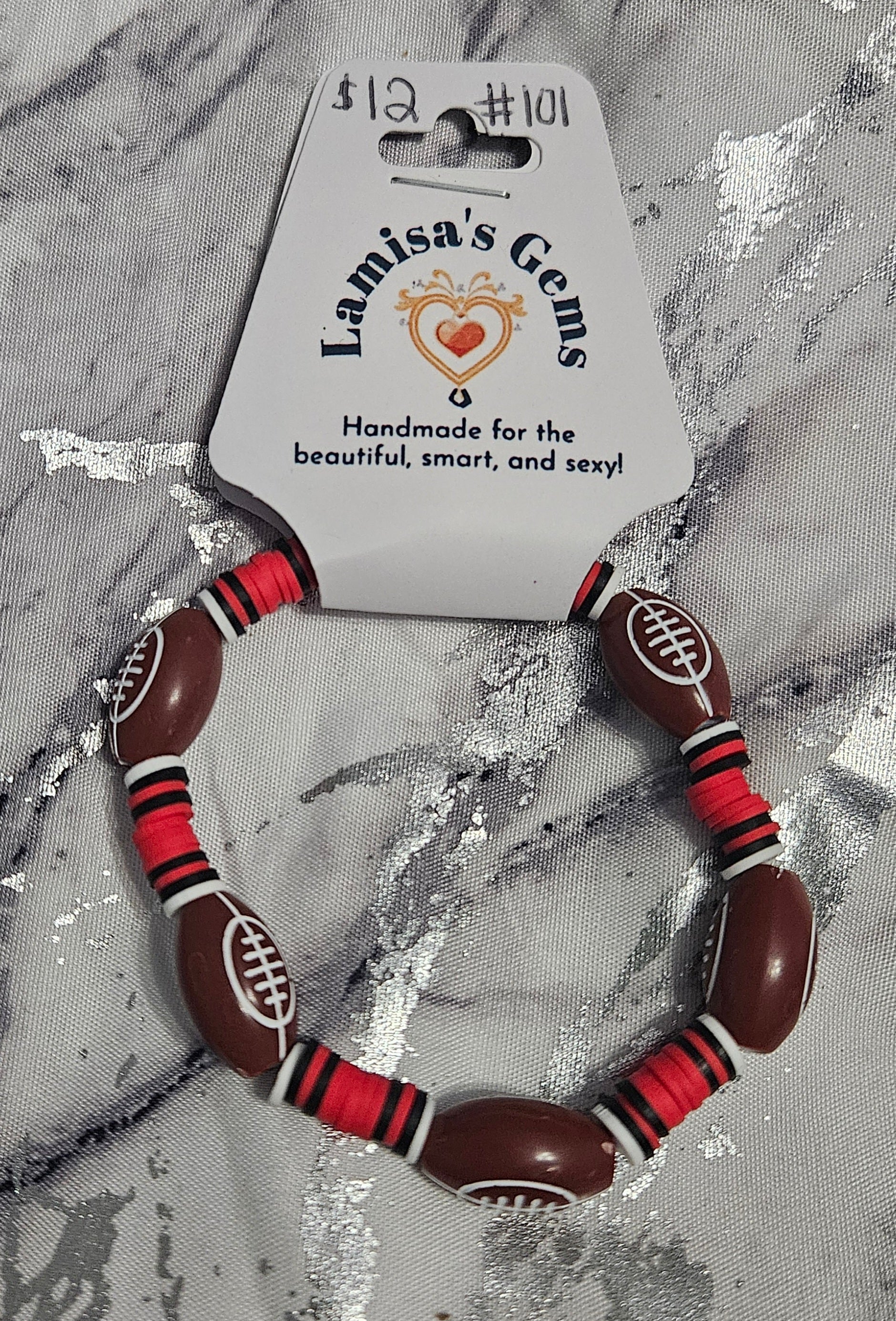 GA Bulldogs Heishi Bracelet with footballs and GA colors 6in-8in Gossamer stretch cord