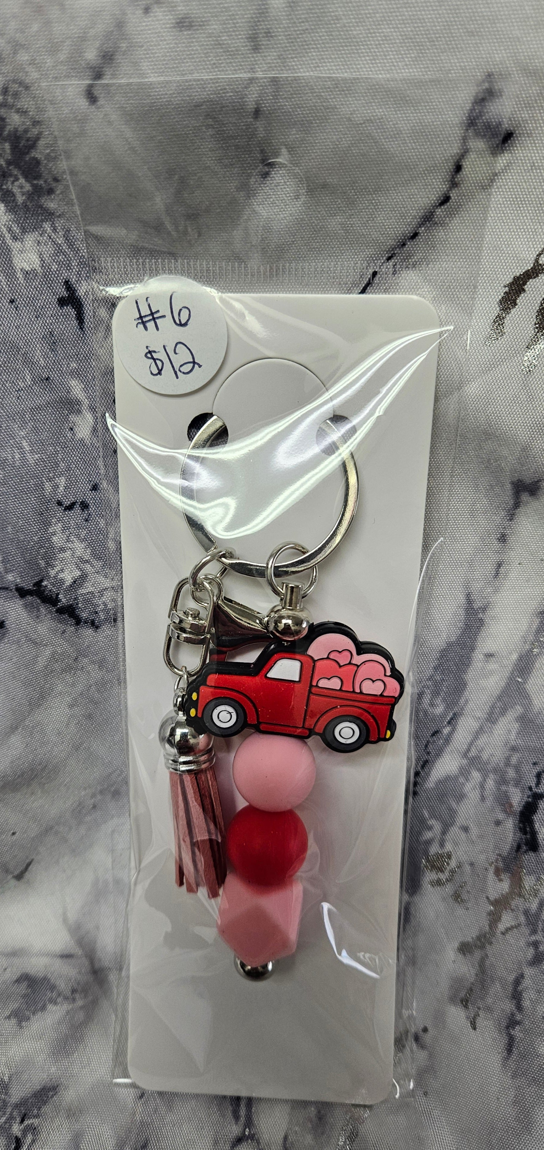 Red Truck with pick and Red hearts in back with pick and Red beads and pick tassel.